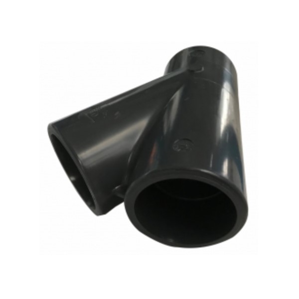 Raccordo Y1SK a T 45° in PVC di colore nero. Serie ad incollaggio per tubi diametro 90 mm. Pressione massima di esercizio 16 bar.