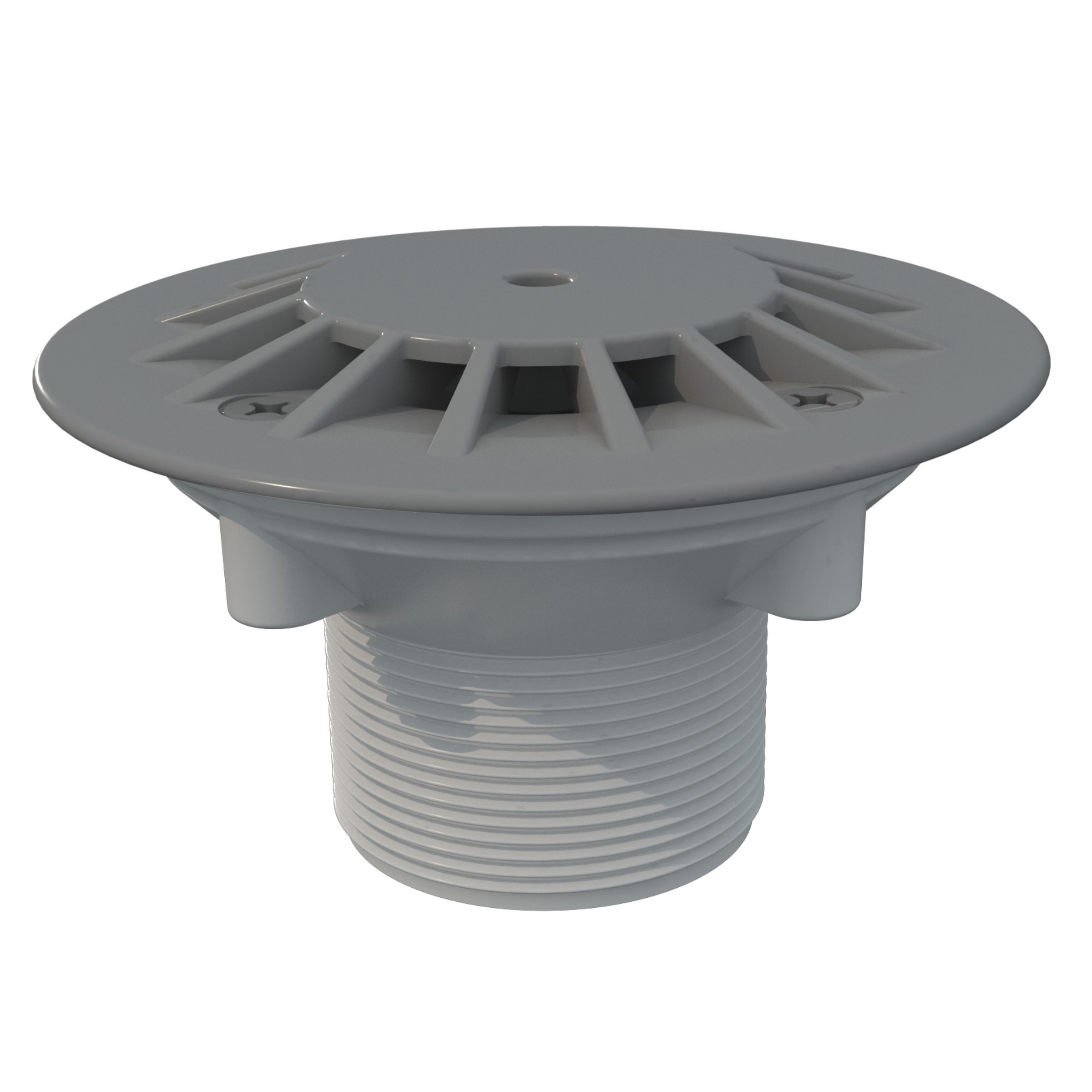 Bocchetta fabbricata con ABS grigio chiaro inalterabile e viti in acciaio inox, resistente ai raggi UV. Dispone di una portata regolabile con filetto esterno di 2" e diametro interno da Ø 50 mm.