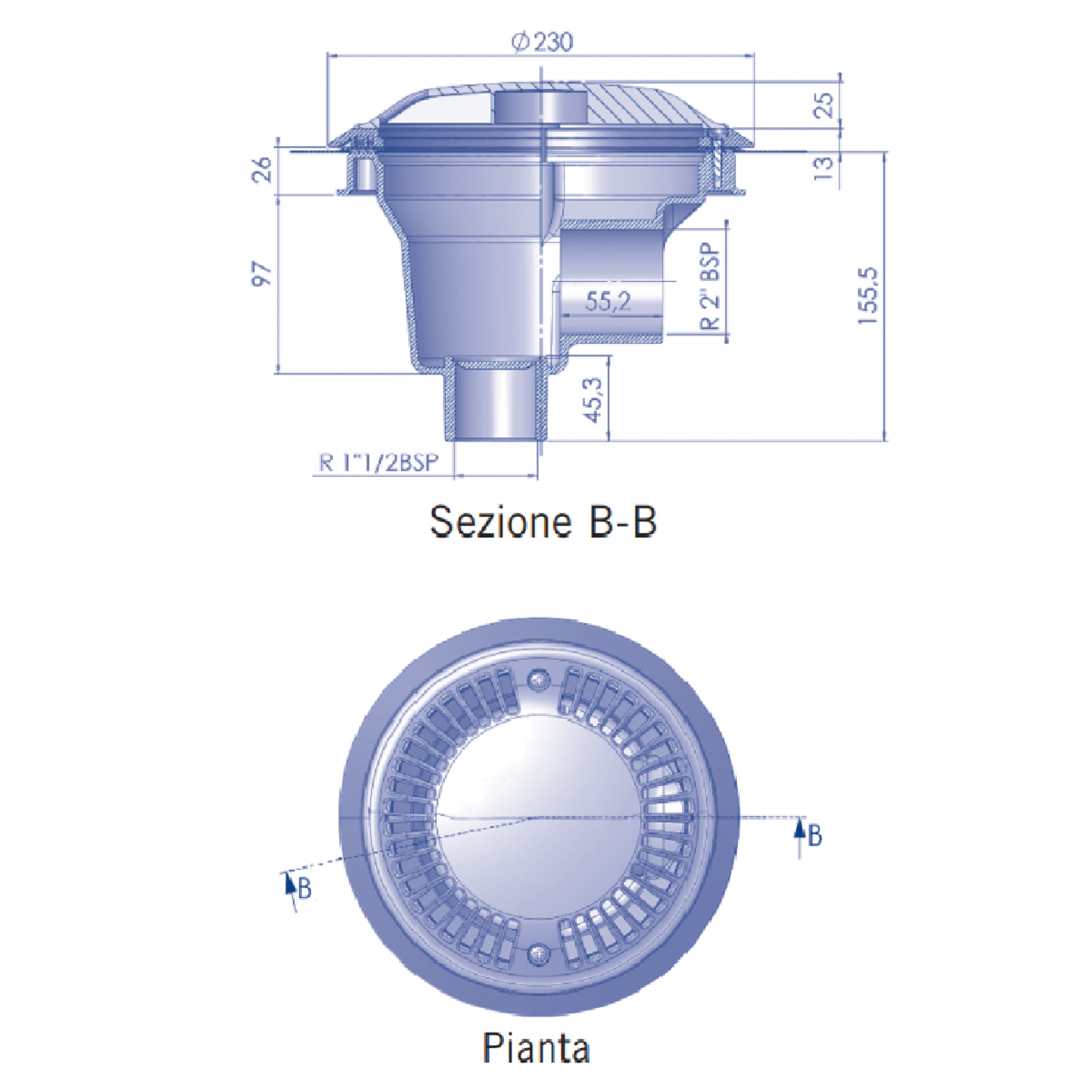 Scarico di fondo circolare con griglia antivortice - Ø 200 mm